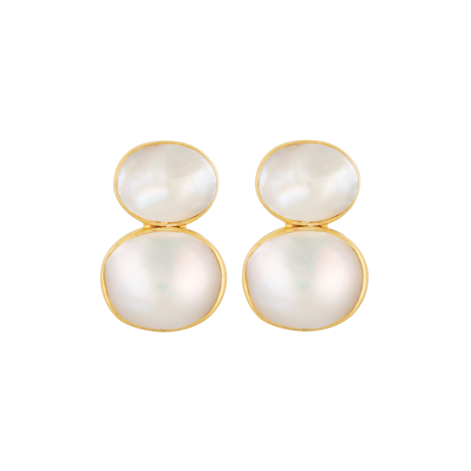 The Cara Earrings feature two luminous oval pearls, set gracefully one above the other, in a refined pin fitting. Their clean silhouette blends classic beauty with a modern edge—making them as striking with everyday essentials as they are with evening wear.