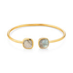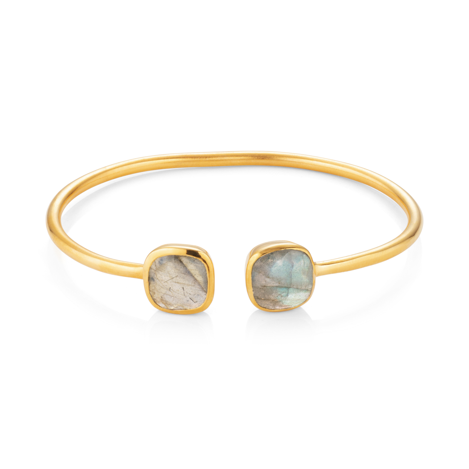 Our popular Twin bangle is back . A bold and striking design the bangle features two cushion cut stones measuring 12mm. Wear on its own or this bangle looks wonderful layered with other bracelets.